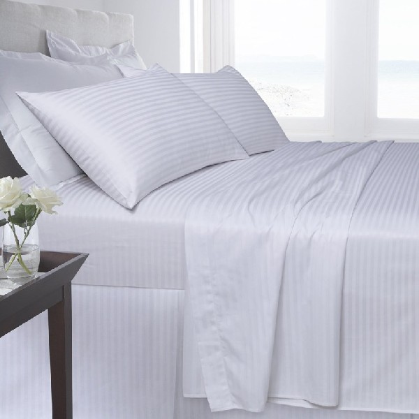 This 100% cotton Luxurious combed cotton satin stripe bedlinen is supersoft and with a 200 thread count will guarantee a good night’s sleep. Available in white or cream and in a variety of sizes.